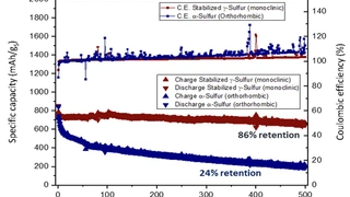»Viele Unternehmen forschen zu Schwefel als Basis für Batterietechnologie. Bei theion arbeiten wir mit der monoklinen Gamma-Kristallstruktur. Die Drexel University in den USA hat in Studien gezeigt, dass diese spezifische Kristallstruktur für den Einsatz in Energiespeichern besonders geeignet ist. Sie nutzt die Schwefel-Speicherkapazität effizient aus, indem sie die aktive Materialoberfläche optimal verfügbar macht, und trägt zur Erhöhung der Zyklenstabilität bei. Das Forschungsteam von Drexel konnte über 4.000 vollständige Lade- und Entladezyklen ohne nennenswerten Kapazitätsverlust nachweisen – ein wichtiger Schritt in Richtung praktikabler Lithium-Schwefel-Batterien«, erläutert Marek Slavik.