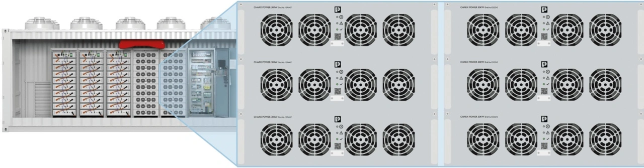 Bei der Verwendung bidirektionaler AC/DC-Leistungsmodule von Phoenix Contact lässt sich dagegen ein zweiter Wechselrichter einsparen, weil die Module über ein und dasselbe Gerät die Batterien entweder sicher laden oder entladen können. Damit können Platz und Kosten für die PCS innerhalb des Batteriecontainers eingespart werden. Außerdem ist der bidirektionale Wechselrichter inselnetzfähig, was einen Aufbau autarker Netzabschnitte mit Schwarzstartfähigkeit, Schieflastfähigkeit oder Grid-Forming ermöglicht. Das Leistungsmodul reagiert mit hoher Dynamik im Millisekunden-Bereich bei einem Lastwechsel. Phoenix Contact betrachtet dabei auch die jeweiligen länderspezifischen Netzeinspeise-Richtlinien. Durch das einfache Zusammenschalten sowie die Konvertierbarkeit lassen sich bis zu 48 Leistungsmodule parallelschalten, sodass eine Leistung von bis zu 1,5 MW realisierbar ist (Bild 3).