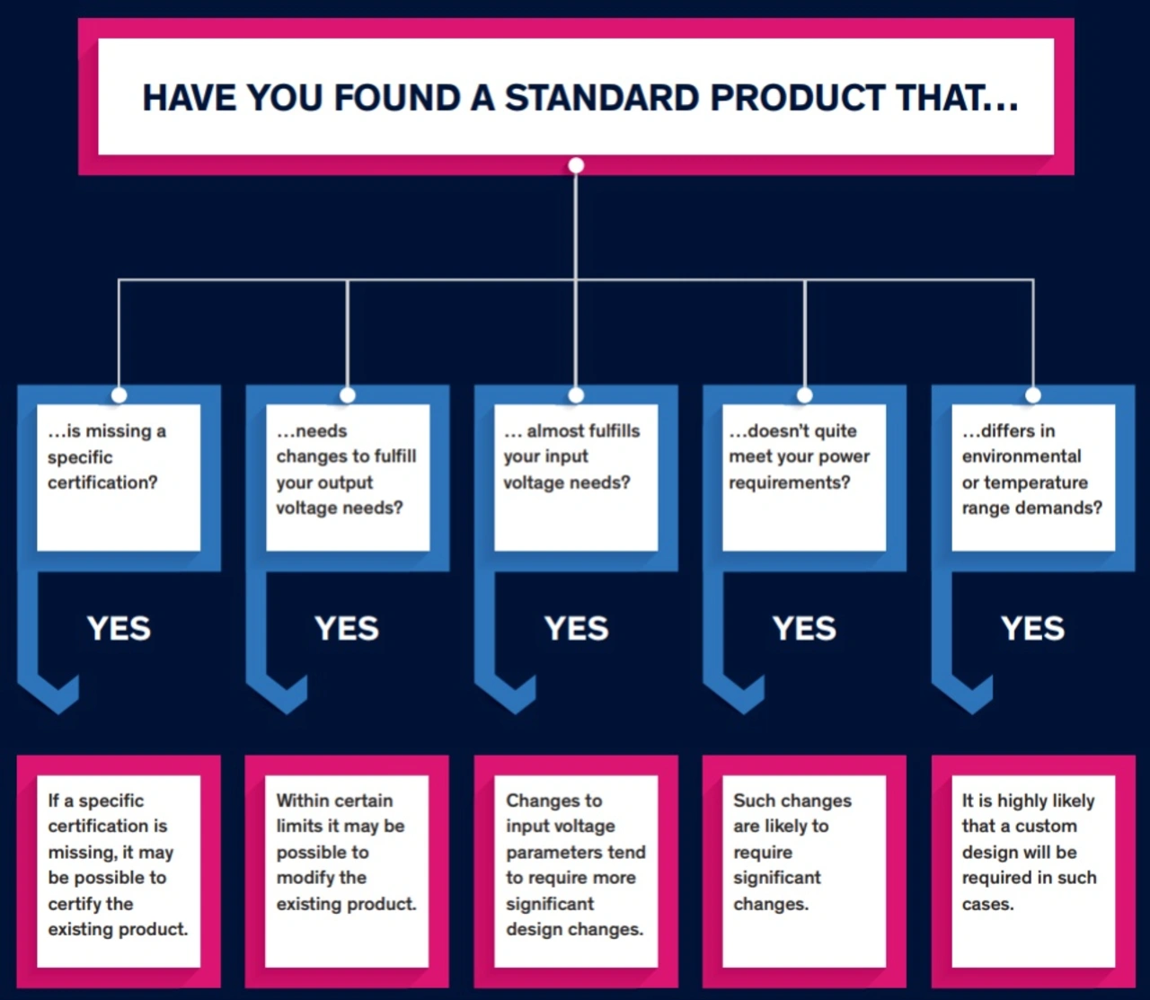 Im Hinblick auf die Vielzahl von Stromversorgungslösungen, die heute auf dem Markt angeboten werden, scheint es, dass die Industrie beinahe jeden Einsatzfall abdeckt: breite Eingangsbereiche, mehrere Ausgänge und kompakte Formfaktoren. Somit scheint es kaum denkbar, dass es noch einen Anlass gibt, eine kundenspezifische Lösung in Erwägung zu ziehen.