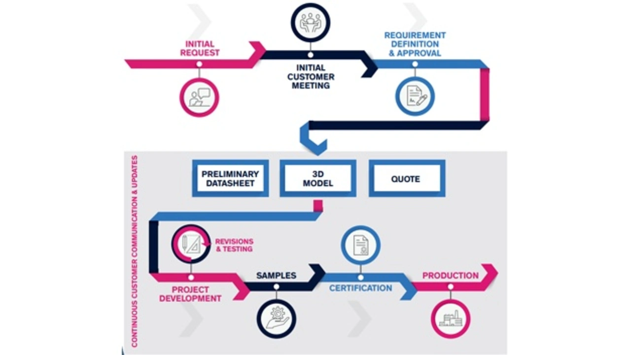 Kunden, die sich für Ihre Stromversorgungslösung für die Zusammenarbeit mit Traco Power entscheiden, folgen einem gut etablierten Prozessdurchlauf von der ersten Anfrage bis zur endgültigen Produktion (Bild 2). In den ersten Meetings werden die technischen Anforderungen festgelegt, und es wird eine fachkundige Analyse der optimalen Auslegung der Stromversorgung erstellt. Dieser Prozess geht durch mehrere Iterationen, bis die endgültige Definition genehmigungsreif ist. Anschließend werden von Traco Power ein Datenblatt, ein 3D-Modell und ein Kostenvoranschlag für die Entwicklung vorgelegt. Das 3D-Modell kann auch in gedruckter Form erstellt werden, um den mechanischen Aspekt der vorgeschlagenen Lösung innerhalb der Applikation des Kunden zu verdeutlichen.