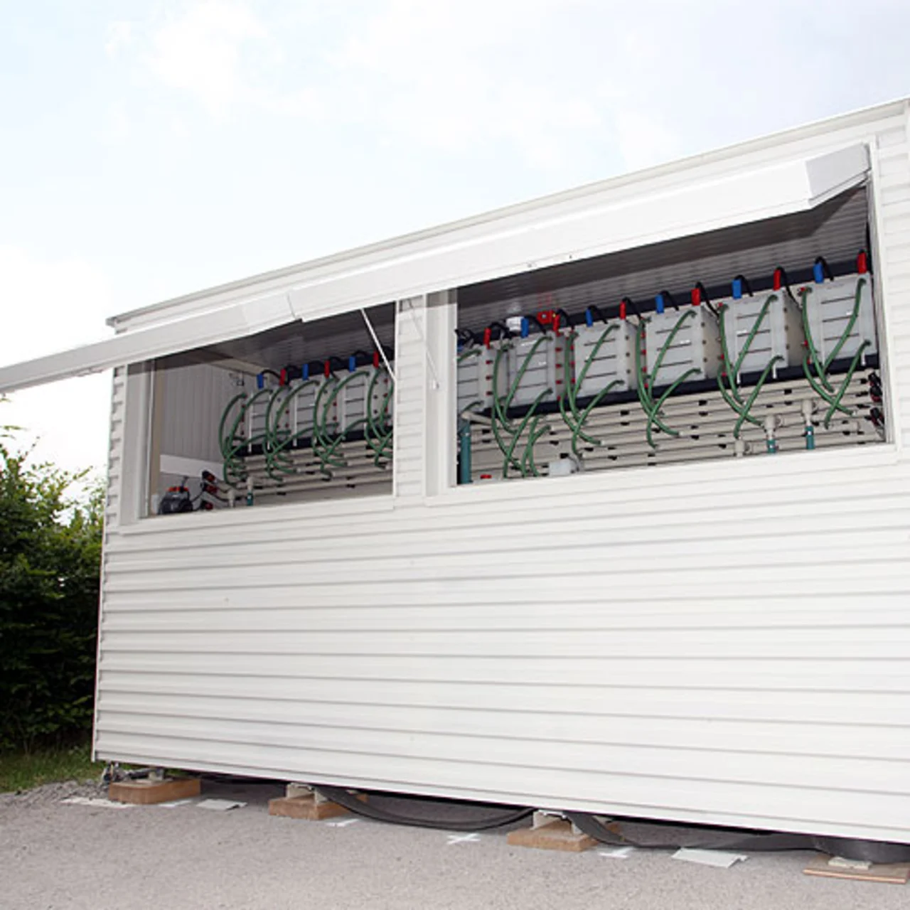 Derzeit ist eine Handvoll Unternehmen weltweit in der Weiterentwicklung der Redox-Durchfluss-Systeme aktiv. Trotz der signifikanten Vorteile der Vanadium-Redox-Batterie-Technik bei bestimmten Anwendungen waren die universitären Forschungsaktivitäten überraschenderweise limitiert. Eine neue Generation kleiner, kommerzieller Vanadium-Redox-Durchflussbatterien wurde unabhängig von den Firmen Cellstrom GmbH [5] (Bild 2) und VRB Power Inc. entwickelt. Beide Firmen besitzen Patente, die für ihre jeweilige Technik von Bedeutung sind. Das ursprüngliche Skyllas-Kazacos-Patent ist inzwischen ausgelaufen.