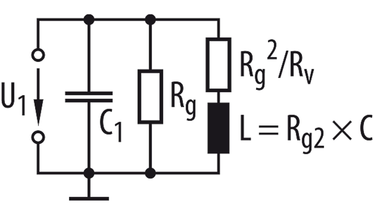 Ein wichtiger Faktor bei der Auslegung eines Halbleiterspeichers für elektrische Energie ist die Minimierung der Verlustleistung. Die Gleichung in Bild 3 besagt, dass die simulierte Induktivität L abhängig ist von dem Quadrat von Rg sowie von C. Der Widerstand Rv des abschließend zu simulierenden Parallelschwingkreises in Bild 3 muss daher zur Bildung einer Energiespeicherzelle unbedingt maximiert werden. Anders ausgedrückt: Der Wert für den Widerstand Rv ist ein Maß für die Verluste des Energiespeicherkreises.
