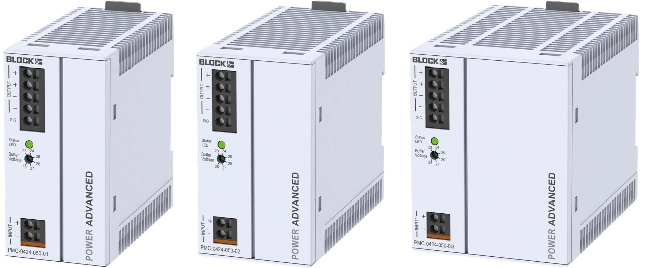 Im Fall der modularen Lösung wird dem Anwender dagegen eine eine skalierbare Pufferkapazität geboten, die je nach Zusammenstellung 20 oder 40 A sicher versorgen kann, was dieses System besonders leistungsfähig für anspruchsvolle Anwendungen macht. Ergänzend bietet Block auch Schaltnetzteile mit integrierter USV-Funktionalität an. Diese kombinieren die Funktionen eines herkömmlichen Netzteils mit einem auf Supercaps basierenden integrierten Energiespeicher, der während des Normalbetriebs aufgeladen wird und bei einem Netzausfall unterbrechungsfrei die angeschlossenen DC-Lasten versorgt.