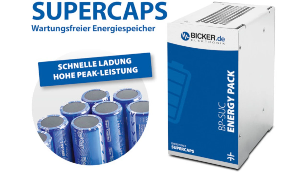 Im Bereich kurzer und mittlerer Überbrückungszeiten bieten sich absolut wartungsfreie Supercaps (Ultrakondensatoren) als hocheffiziente und besonders langlebige Energiespeicher mit mehr als 500.000 Lade- und Entladezyklen an. Im Gegensatz zu Batterien, die Energie über den Umweg einer chemischen Reaktion speichern, basieren Supercaps auf elektrophysikalischen Prinzipien und sind innerhalb kürzester Zeit geladen und einsatzbereit. Energiespeicher mit Superkondensatoren warten mit einer hohen Strombelastbarkeit, Leistungsdichte und Zuverlässigkeit auf. Bickers BP-SUC-D-Energiespeicher verfügen über eine integrierte Steuer- und Schutzschaltung sowie eine Connect/Disconnect Power-Funktion und arbeiten im erweiterten Temperaturbereich von –20 bis +70 °C.