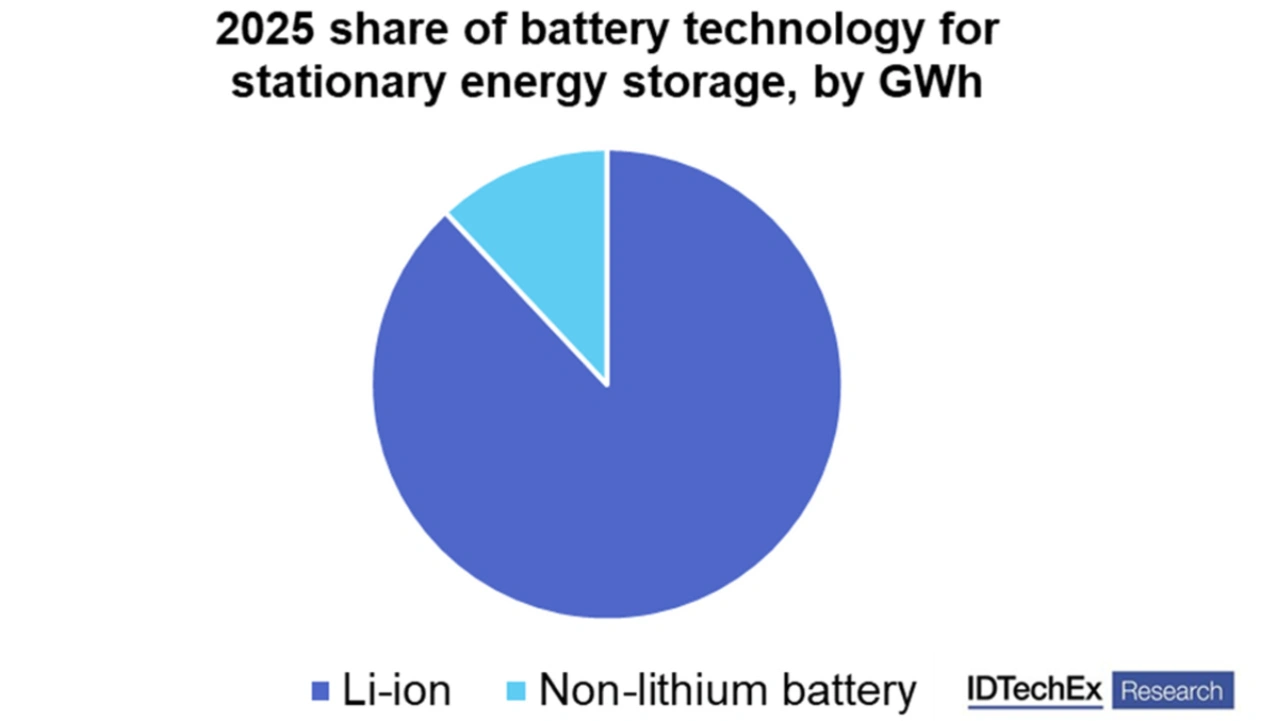 Geht es nach den Marktforscher von IDTechEx, könnte der Markt für Nicht-Lithium-Batterien vor allem bei stationären Speichern ab der zweiten Hälfte dieser Dekade um jährlich 61 Prozent steigen. Doch auch Lithium-basierte Zellchemien werden sich weiter diversifizieren.