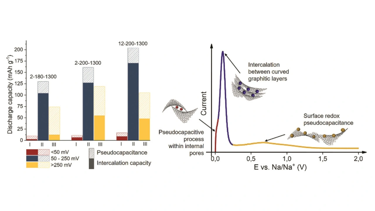 Hartkarbon scheint das einzige Material zu sein, das sich tatsächlich als Anodenmaterial eignet. Denn es besitzt eine unregelmäßige Anordnung verzerrter graphitähnlicher Schichten und verfügt über eine vergleichbare Speicherfähigkeit für Natriumionen wie Graphit für Lithiumionen. Allerdings blieb bislang noch unklar, warum und wie dies geschieht.