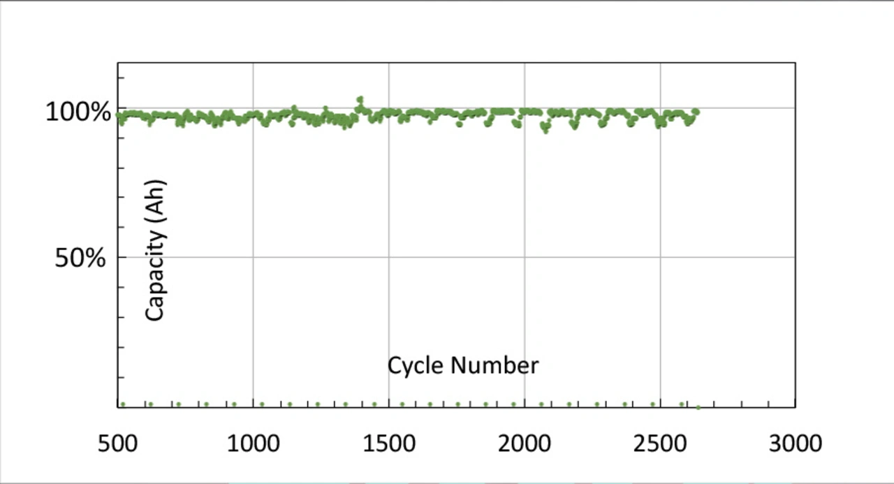 Nachdem dieser Prozessschritt eingeführt worden war, begann im Mai 2022 ein zweites EFC-Programm mit kommerziellen 7-Ah-Zellen, die in 20 Minuten geladen und dann in 20 Minuten wieder entladen wurden. Die Entladetiefe (Depth of Discharge, DoD) betrug 90 Prozent. Nach 1000 Zyklen wurde außerdem alle 100 Zyklen die Impedanz der Zellen gemessen. Selbst bei höheren Lade-/Entladezyklen erreichten diese optimierten Zellen 95 Prozent der Energiedichte einer herkömmlichen Zelle, die mit niedrigeren Raten betrieben wurde.