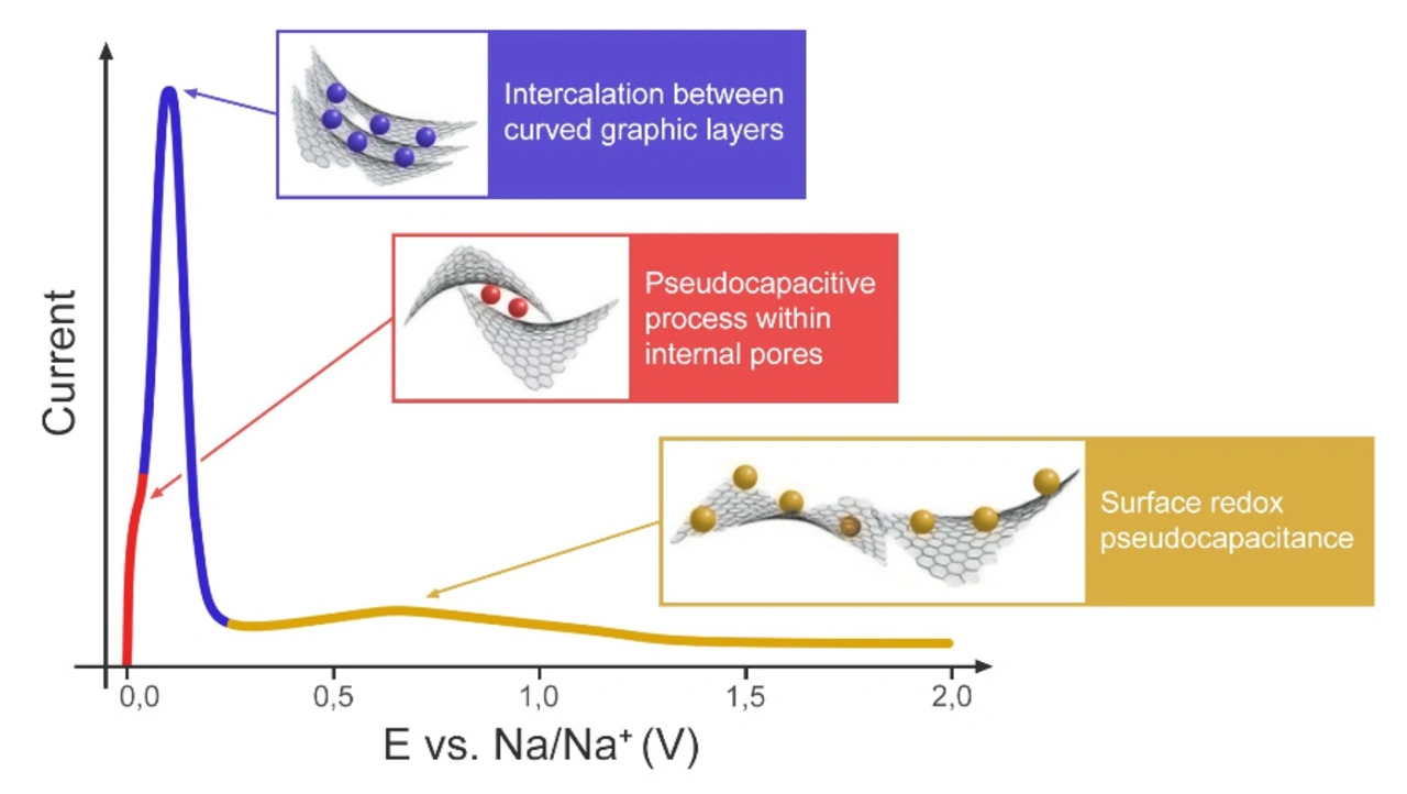 »Es gibt mehrere Thesen, wie Natrium in Hartkarbon eingebracht werden könnte«, sagte Oleg Drozhzhin, Projektleiter und leitender Forscher am Center for Energy Science and Technology (CEST) von Skoltech und an der Staatlichen Universität Moskau. »In unserer Studie haben wir eine davon validiert und leicht erweitert. Wir fanden heraus, dass Hartkarbon ein interkalationsartiges Verhalten zeigt, um den größten Teil der Ladung zu speichern. Das ist eine gute Nachricht. Denn die Interkalation ist genau das, was wir für die Batterie benötigen. Gleichzeitig finden auch Oberflächenprozesse, die mit der Pseudokapazität verbunden sind, statt, wie sie bei Superkondensatoren üblich sind.«