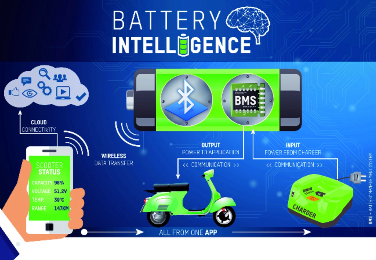 Über seine standardmäßig integrierten Bluetooth-Kommunikationsschnittstellen meldet das intelligente Batteriesystem beliebige Systemdaten seines oder seiner Akku-Packs mittels Bluetooth an ein festes oder mobiles Drittgerät. In der Basis-Version der App werden die noch vorgehaltene Leistung, Zahl der Ladezyklen und Verschleiß der Akkus remote überwacht und gemeldet. Weitere Funktionen werden nach Kundenbedarf integriert.