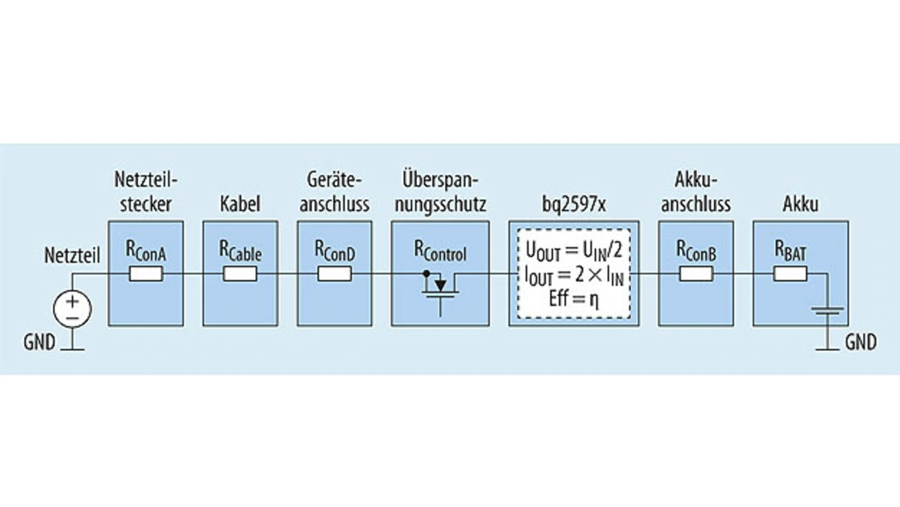 In Bild 1 sind die wichtigsten Verluste zusammengefasst, die in einem typischen Ladesystem für Smartphones mit kapazitätsstarkem Akku auftreten.