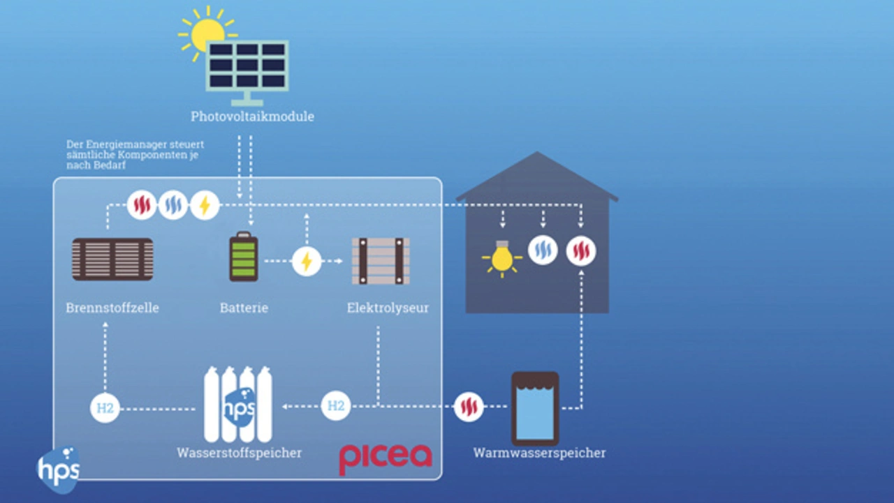 Ziel von picea ist es, die Energieverluste, die mit den Transformationsprozessen verbunden sind, minimal zu halten. Deshalb bezieht das System auch Wetterdaten in seine Steuerung mit ein: Photovoltaikstrom wird nur wenn nötig energieaufwändig per Elektrolyse in grünen Wasserstoff umgewandelt. Doch wenn viele Sonnenstunden zu erwarten sind, aktiviert picea so früh wie möglich den Elektrolyseur, denn dieser erreicht seine volle Leistung erst nach einer gewissen Vorlaufzeit. Dasselbe vorausschauende Prinzip gilt für die Rückwandlung der chemischen Energie in elektrische Energie.