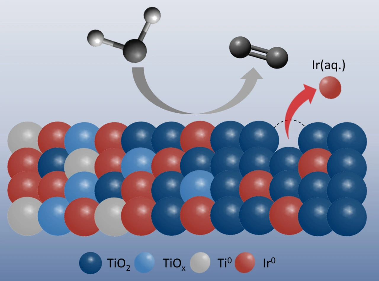 Anoden für die elektrolytische Aufspaltung von Wasser bestehen oft aus Iridium-basierten Materialien. Um die Stabilität des Iridium-Katalysators zu erhöhen, hat ein Forscherteam eine Probe hergestellt, in der die Konzentration von Iridium und Titanoxiden systematisch variiert - und das mit Erfolg.