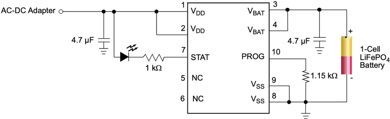 Durch die zunehmende Verwendung von LiFePO4 am Markt haben sich Chip-Hersteller dazu veranlasst gesehen, monolithische ICs einzuführen, die die Zellen mit einem optimierten Profil laden. Diese ermöglichen die Integration der Technologie, ohne dass eine Stromversorgungsschaltung von Grund auf neu entwickelt werden muss.