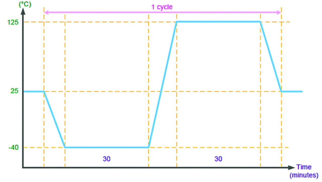 Seine Pinbelegung ist kompatibel zu Linearreglern mit drei Anschlüssen und daher für den direkten Anschluss an die 48-V-Batterie in Hybrid-Elektrofahrzeugen geeignet. Durch den großen Eingangsspannungsbereich von 11: 1 können die Kosten einer Eingangsüberspannungsklemme gespart werden. Thermoschock-Zyklen sind ein kritischer Bestandteil von Stresstests zur Automobilqualifizierung. Das von Recom verwendete Profil ist in Bild 3 dargestellt. Die Teile R-78Q und RAQ haben kürzlich die erforderlichen 1000-Zyklen-Tests erfolgreich abgeschlossen.