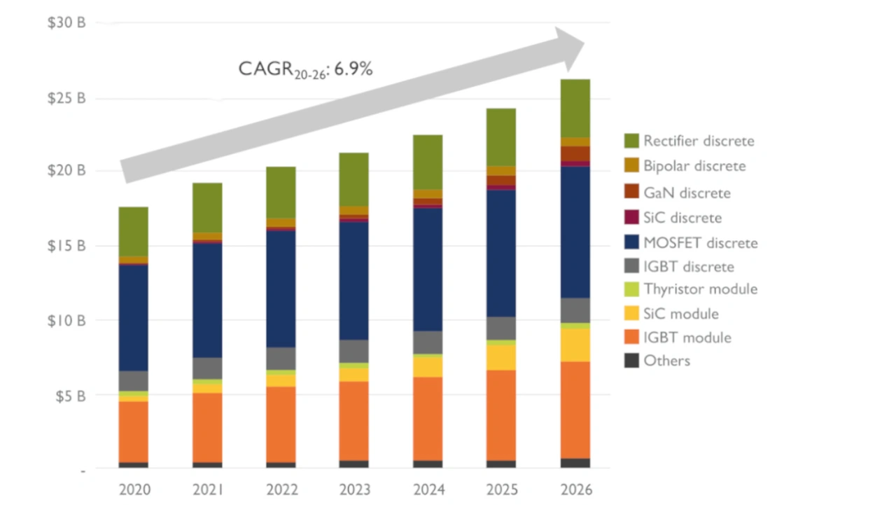 Geht es nach den Analysten von Yole Développement wird der Markt für Leistungshalbleiter bis 2026 jährlich um 6,9 Prozent auf 26 Milliarden US-Dollar wachsen. Um dies stemmen zu können, investieren die Hersteller massiv in Produktionskapazitäten.