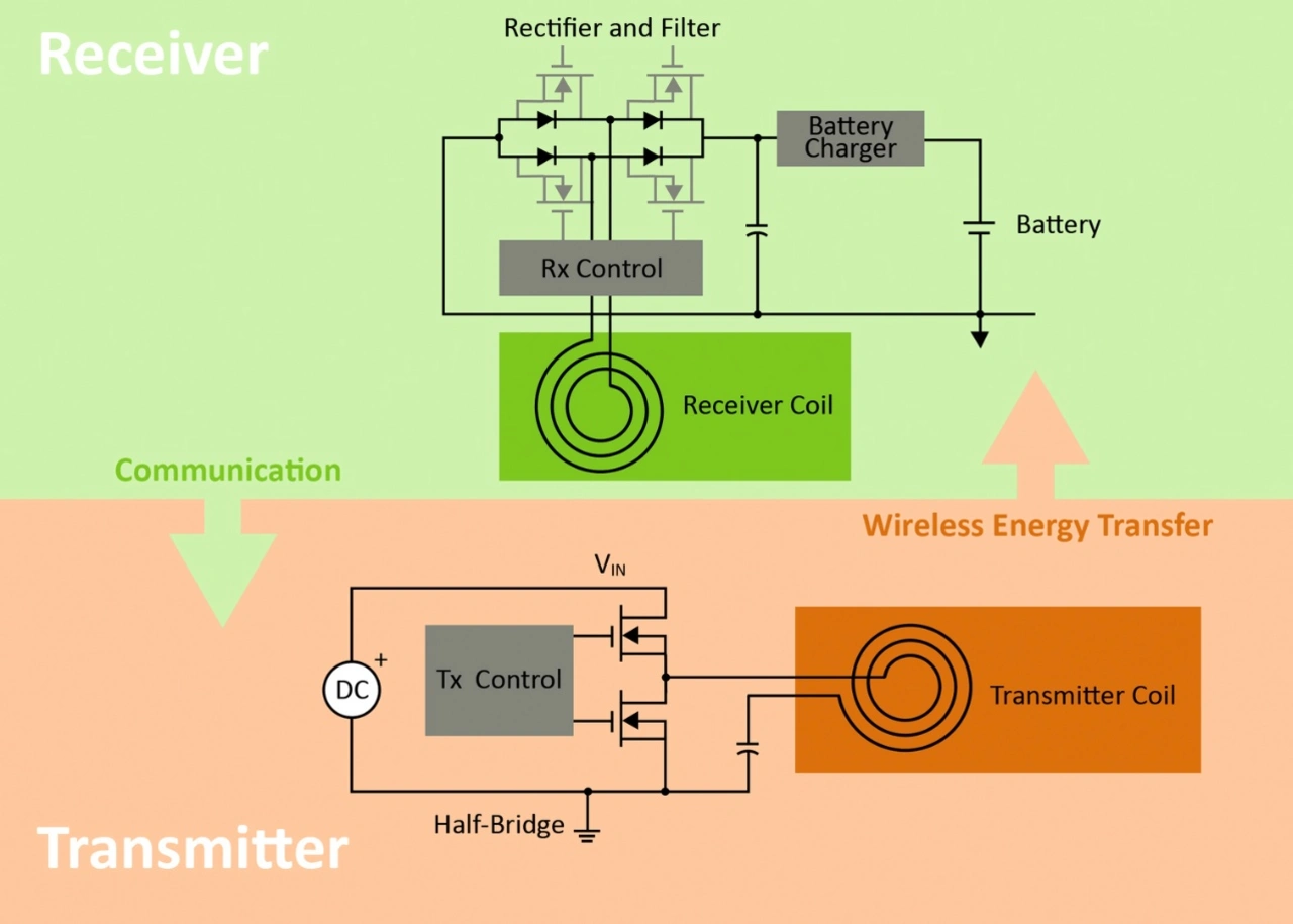 Drahtlose Ladesysteme benötigen eine Reihe von Komponenten einschließlich Sendespule, Abstimmkondensatoren, Spulentreiber und Empfängerspule. Weitere Komponenten sind Diodengleichrichter, ein Gleichspannungswandler, Steuerschaltungen und -algorithmen für Sender und Empfänger sowie eine Batterieladeschaltung.