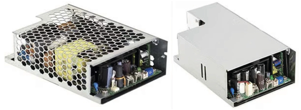 In verschiedenen kompakten Größen sind die integrierten AC/DC-Netzteile der 500W-RPS-Serie des Unternehmens für den medizinischen Bereich erhältlich, darunter die gängigen Größen 3 Zoll x 2 Zoll, 4 Zoll x 2 Zoll und 5 Zoll x 3 Zoll. Diese Modelle verfügen über einen Eingang für 80 bis 264 VAC und bieten Ausgangsspannungsoptionen von 12 V bis 48 V. Das RPS-500-48-C (Bild 2, links) für 48 V wird in einem geschlossenen Gehäuse geliefert und misst 5,12 Zoll x 3,39 Zoll x 1,69 Zoll (130,0 mm x 86,0 mm x 43,0 mm). Etwas größer ist das RPS-500-48-SF (Bild 2, rechts) mit einem seitlich montierten Lüfter mit 6,30 Zoll x 3,39 Zoll x 1,69 Zoll (160,0 mm x 86,0 mm x 43,0 mm).