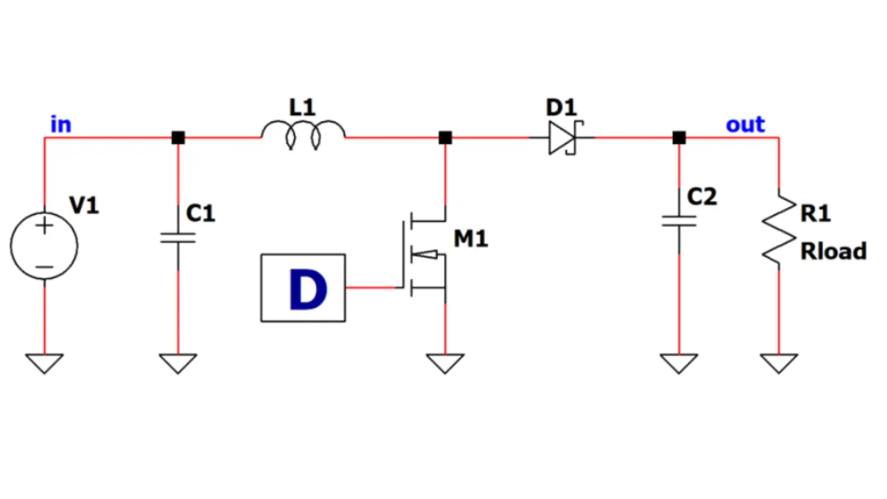 Der Schaltungsblock D für beide Topologien ist das PWM-Signal, das den Leistungs-MOSFET treibt. Die Werte für die Schaltperioden des PWM-Signals werden durch das Ein- und Ausgangsspannungsverhältnis der Schaltung bestimmt. Der Einfachheit halber werden in diesem Artikel die Gleichungen für den verlustfreien, nichtlückenden Betrieb (Continuous Conduction Mode, CCM) verwendet, da sie nahe genug beieinander liegende Ergebnisse liefern.