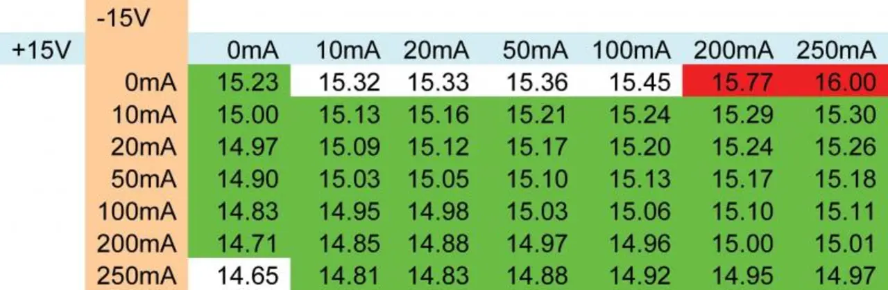 Eine Simulation mit dem Werkzeug »TINA« von Texas Instruments ergibt die Kurven von Bild 4. In Tabelle 1 sind die negativen Ausgangspannungen bei unterschiedlichen Ausgangströmen eingetragen.