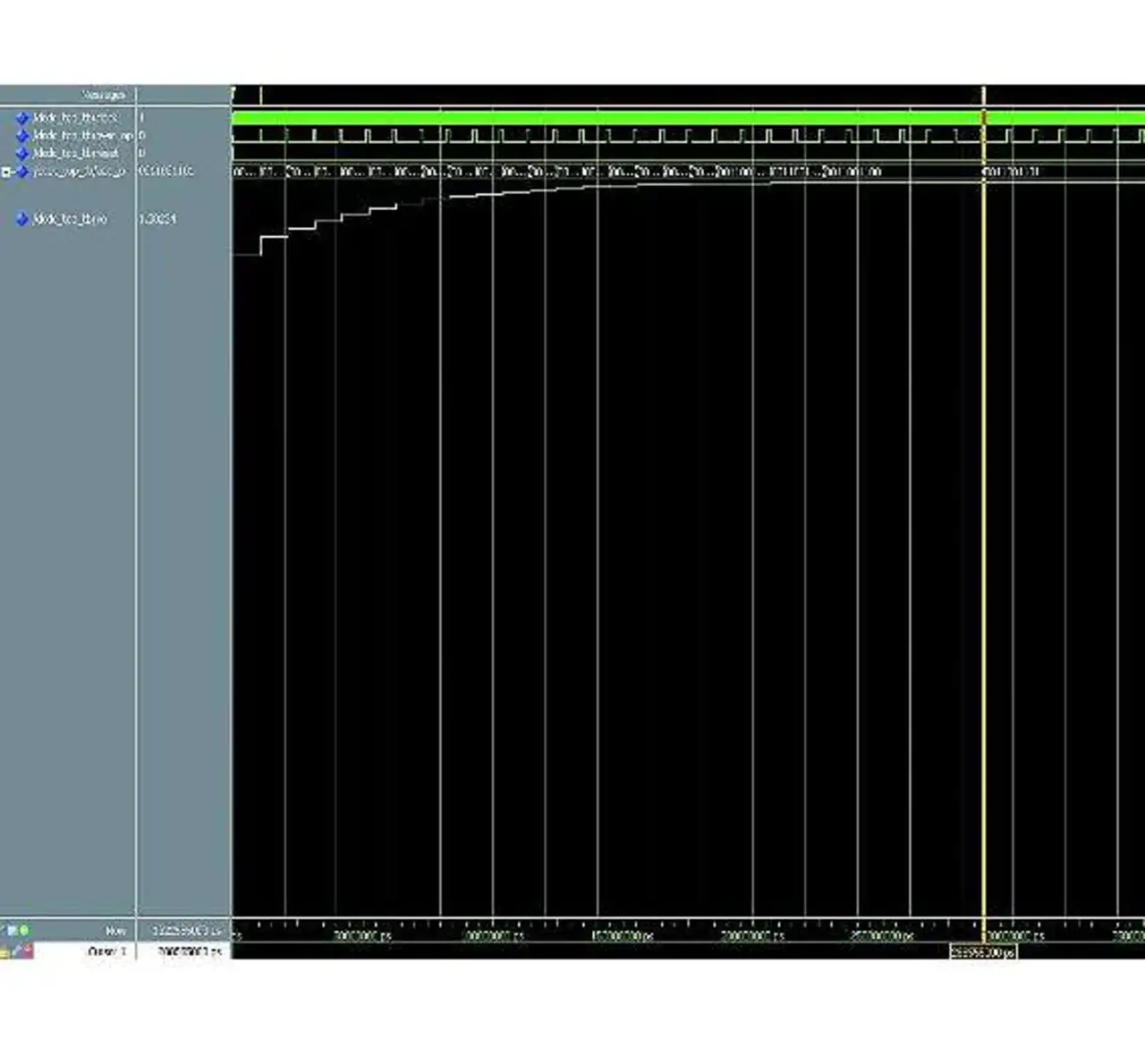 Bild 2 und 3 zeigen die Ergebnisse einer Mixed-Signal-Simulation der Performance des Algorithmus‘ bei der Ansteuerung von Ausgängen mit 1 V und 3,3 V. Diese Resultate belegen, dass man die gewünschten Ausgangsspannungen mit einer FPGA-basierten Steuerung genau einstellen kann.