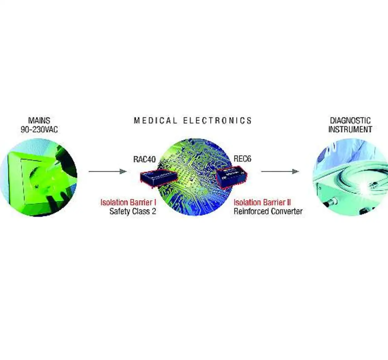 In der Medizinelektronik steht die Patientensicherheit an erster Stelle. Diagnosewerkzeuge, die »leitenden Kontakt« zum Patienten haben, wie zum Beispiel EKG oder Endoskop, müssen auch im Falle eines Defekts absolut sicher sein. Ein geerdetes Gehäuse allein genügt nicht - gefordert sind zwei getrennte Sicherheitsbarrieren. Ganz nach dem Motto: Doppelt genäht hält besser.