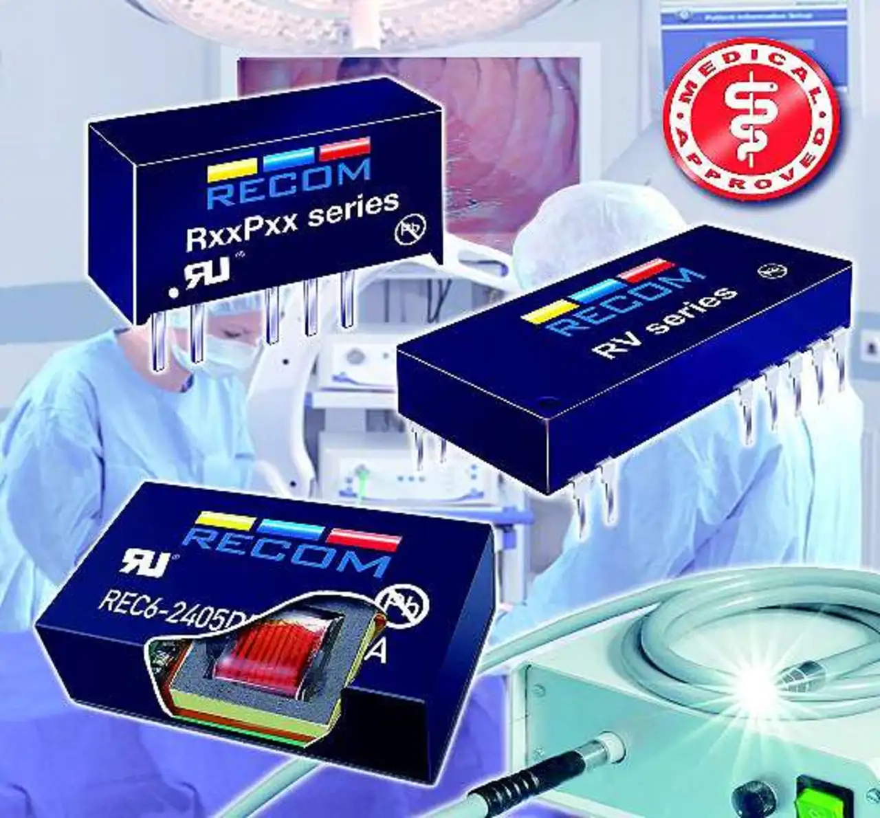 Recom hat mit den Modellen »RAC15« und »RAC40« (Bild 2) zwei »medizinische« Netzmodule entwickelt, die mit 15 und 40 Watt Leistung den unteren Leistungsbereich abdecken, wie er für Endoskope und ähnliche Systeme ausreichend ist. Beide Module sind für Leiterplattemontage geeignet und weltweit einsetzbar, da sie an Netzspannungen von 90 V bis 264 V (AC) betrieben werden können.