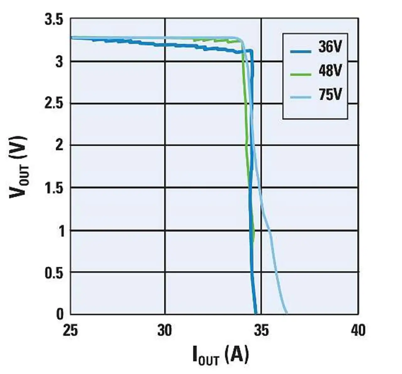 Bei der Wahl des ACL-Kondensators sollte eine minimale Welligkeit das Hauptkriterium sein, denn jegliche Welligkeit an diesem Kondensator verursacht Spannungsschwankungen am Mittenpunkt des kapazitiven Spannungsteilers. Andererseits kann ein ACL-Kondensator mit hoher Kapazität das Ansprechen der ACL-Schaltung verlangsamen. Dadurch bleibt die zyklusweise Strombegrenzung länger wirksam und die Mittenspannung des kapazitiven Spannungsteilers driftet. Das Ansprechverhalten der ACLSchaltung ist unabhängig davon, ob eine Überlast sanft oder abrupt einsetzt. Im Überlastfall verwandelt die ACL-Schaltung das Netzteil in eine Konstantstromquelle mit einem durchschnittlichen Ausgangsstrom gemäß der Formel (Kasten S. 21). Darin stehen Npri und Nsec für die Windungszahl der Primärbeziehungsweise Sekundärseite des Leistungsübertragers, RCS ist der Wert des Stromabtastwiderstands und bei CTTurns handelt es sich um die Windungszahl des Stromwandlers. Dieses Verfahren wird häufig als »Brickwall«-Strombegrenzung bezeichnet. Sehr vorteilhaft ist, dass sich das Einsetzen der Strombegrenzung bei verschiedenen Eingangsspannungen sehr gut vorhersagen lässt. Bei Wandlern mit fester Schaltfrequenz weist der durchschnittliche Ausgangsstrom bei abrupt einsetzender Überlast (z.B. bei Kurzschlüssen) allerdings eine Schleppe auf. Der Spitzenstrom in der Ausgangsinduktivität nimmt während des On-Intervalls langsam zu und kann während des Off-Intervalls nicht mehr vollständig zurückgehen. Signallaufzeiten und Abschaltverzögerungen sind der Grund dafür, dass sich das On-Intervall nicht beliebig verkürzen lässt. Um die Schleppe des Ausgangsstroms zu unterbinden, wenn sich der Leistungswandler im ACL-Modus befindet, reduziert der LM5039 die Oszillatorfrequenz proportional – bei einem abrupten Kurzschluss auf ein Drittel der vom Widerstand RT eingestellten Oszillatorfrequenz. Dieses Frequency-Foldback-Verhalten wird nur bei Ansprechen der ACLFunktion wirksam und beeinflusst das dynamische Ansprechverhalten der Regelschleife nicht. Die Spannungs-Strom-Kennlinien in Bild 4 illustrieren die Wirkungsweise der Brickwall-Strombegrenzung.