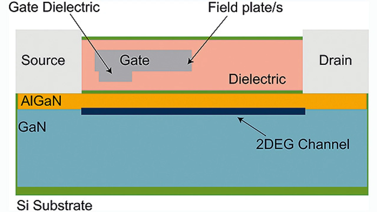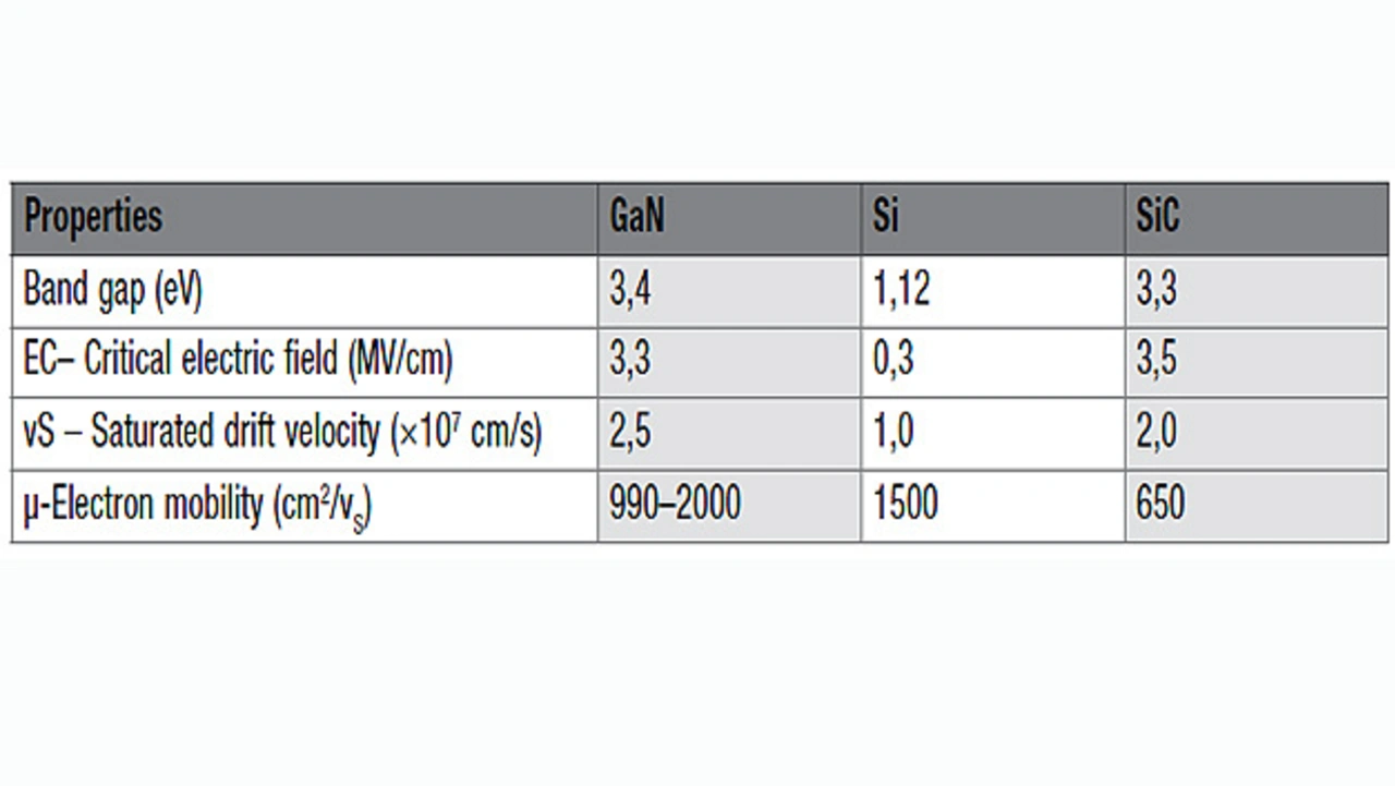 Im Vergleich zu Si, das eine Bandlücke von 1,12 eV aufweist, sind GaN und SiC Verbundhalbleiter, deren Bandlücke mit 3,4 eV beziehungsweise 3,3 eV etwa dreimal so groß ist. Damit können beide höhere Spannungen und höhere Frequenzen unterstützen.
