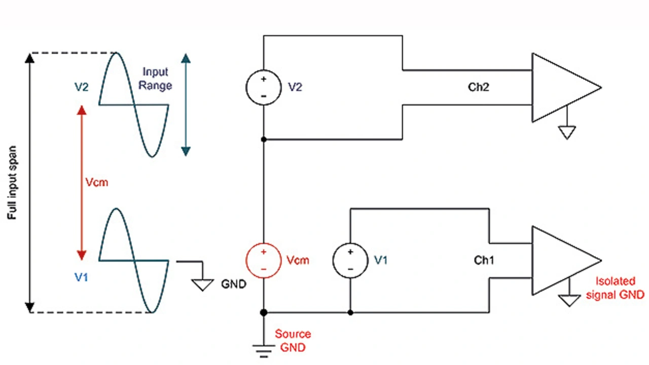 Sind die verwendeten analogen Eingangsmodule nicht für hohe Gleichtaktspannungen ausgelegt, kann der absolute Maximalwert des eingangsseitigen Verstärkers, Multiplexers oder A-D-Wandlers (ADC) überschritten werden, sodass die Schaltung dauerhaft beschädigt werden kann. Und selbst wenn der Eingang gegen hohe Spannungen geschützt ist, kann eine hohe Gleichtaktspannung die Messgenauigkeit beeinträchtigen und zu entsprechend unzuverlässigen Messwerten führen.