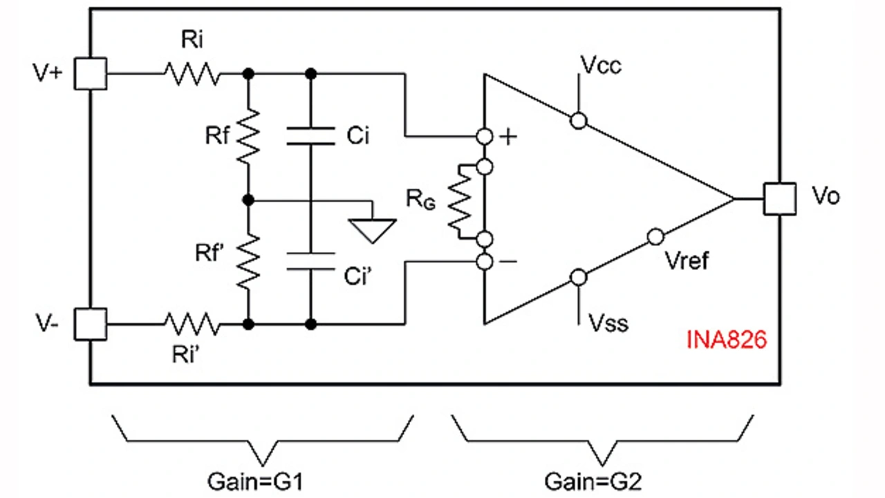 Bild 4 zeigt einen Widerstandsteiler, gefolgt von einem Messverstärker des Typs INA826. Der Spannungsteiler skaliert die Gleichtaktspannung, aber damit natürlich auch das differenzielle Eingangssignal herab. Um den Dynamikbereich zu maximieren, kann der Messverstärker das differenzielle Signal wieder auf seinen ursprünglichen Pegel anheben.