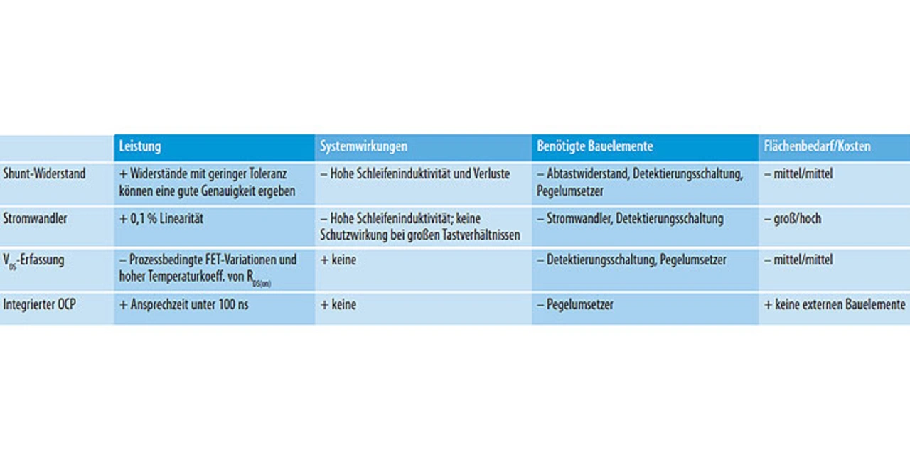 Das OCP-Konzept auf Basis eines Shunt-Widerstands bietet einen guten Kompromiss zwischen Lösungen auf der Grundlage von Stromwandlern und auf VDS-Basis. Es ist genauer als die VDS-Abtastung und weist geringere parasitäre Induktivitäten auf als das Stromwandler-Verfahren.