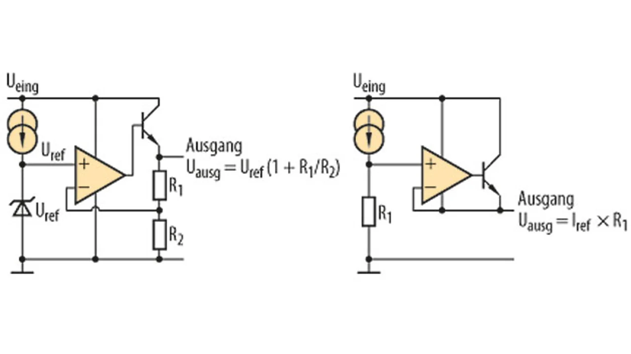 2007 wurde mit dem Baustein LT3080 eine neue Architektur eingeführt (Bild 1 rechts), bei der als Referenz eine Stromquelle und als Ausgangsverstärker ein Spannungsfolger verwendet werden.