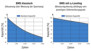 Bei diesem Ladeverfahren muss an der bestehenden Hardware nichts geändert werden. Der Algorithmus sorgt dafür, dass die einzelnen Zellen beim Laden so behandelt und gesteuert werden, wie es im Datenblatt vorgesehen ist – was mit herkömmlichen Ladeverfahren nicht in der Form geschieht. Infolgedessen altern die Zellen mit ƞ-Leveling nicht vorschnell, sondern können ihre vorgesehene Lebensdauer erreichen. Der springende Punkt ist: Obwohl sich diese Zellen in einer Reihenschaltung befinden, wird durch diese Wirkungsgrad-Korrektur jede einzelne Zelle so behandelt, als wäre sie in einer Einzelzellanwendung. Der langfristige Gewinn an Lebensdauer des kompletten Batterieblocks kann immens sein.
