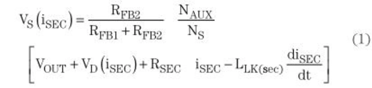 die Ausgangsspannung präzise aus der Spannung der Hilfswicklungs zu extrahieren – besonders, wenn die Abtastung an bestimmten Punkten erfolgt [5]. Um die Ausgangsspannung genau zu regeln, muss die Spannung beim Nulldurchgang des Sekundärstroms an der Hilfswicklung abgetastet werden, nur so wird die Stromabhängigkeit von Gleichung 1 beseitigt.