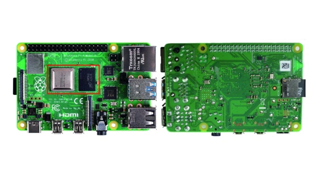 Das aktuelle Board Raspberry Pi4B [1] wurde im Juni 2019 vorgestellt und bietet als wesentliche Neuerungen gegenüber dem Vorgänger (RP 3B+) vier Cortex-A72-Kerne mit einem Takt von 1,5 GHz, einen LPDDR4-SDRAM-Speicher mit einer maximalen Kapazität von bis zu 4 GByte, eine USB-3.0-Schnittstelle, eine verbesserte Ethernet-Anbindung sowie erweiterte WLAN- und Bluetooth-Fähigkeiten. Die Rechenleistung soll laut Rasperry Pi Foun- dation bis zu dreimal so hoch sein, wie beim RP 3B+, der seine vier Cortex-A53-Kerne (BCM 2837) mit 1,4 GHz taktet. Die tatsächliche Leistungssteigerung ergibt sich in der Praxis im jeweils konkreten Anwendungsfall. Die mögliche Leistungssteigerung ist wesentlich dem LPDDR4-Speicher (statt LPDDR2) geschuldet und nicht allein dem neueren Kern (BCM 2711). Der RP-SoC wird in einem 28-nm-Prozess statt wie bisher in einem 40-nm-Prozess gefertigt, was die Energieaufnahme reduziert.