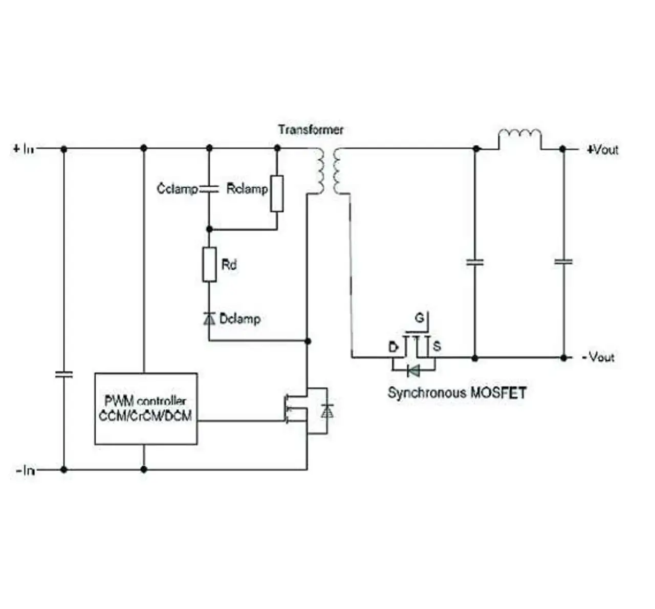 Besonders kritisch ist in diesem Zusammenhang, dass der Ausgangsgleichrichter eines Sperrwandlers auch im Durchlassbereich eine signifikante Quelle von Leistungsverlusten darstellt, weil selbst die allerbesten Schottky-Dioden eine relativ hohe Vorwärtsspannung bei großen Strömen aufweisen. Daher ist die Synchrongleichrichtung mittlerweile als probates Mittel anerkannt, um den schlechten Wirkungsgrad der herkömmlichen Dioden-Gleichrichtung zu verbessern.