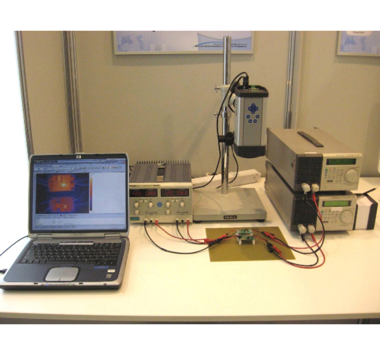Bei HF-DC/DCWandlern lassen sich diese Werte nur sehr schwer ermitteln, ohne eine zusätzliche Induktivität in den Strompfad einzubringen. Und diese vom Messaufbau herrührende Induktivität beeinflusst das Verhalten der Schaltung. Hier bietet sich die Thermographie als rückwirkungsfreie Messmethode an: Mit ihr lassen sich die Verlustleistungen der einzelnen Wärmequellen mithilfe einer Wärmebildkamera bestimmen, ohne in die Schaltung eingreifen zu müssen.