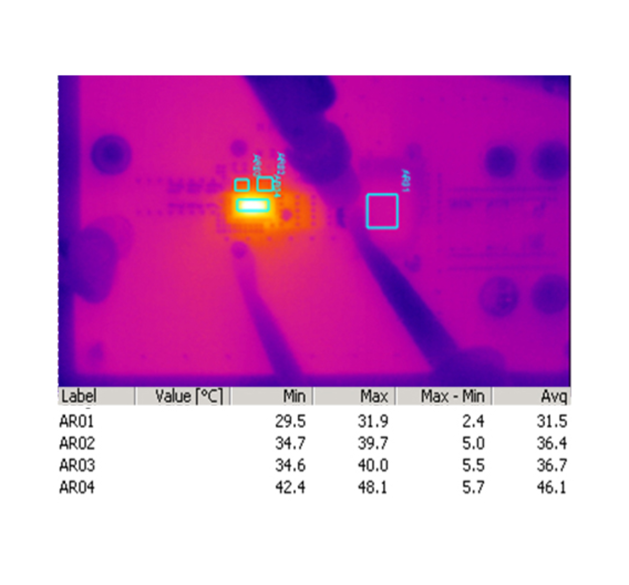 Die Unterschiede zwischen den Ergebnissen der thermischen und der elektrischen Methode sind auf weniger signifikante Wärmequellen zurückzuführen, die nicht in die Berechnung einbezogen wurden. Hierzu zählen beispielsweise die Leiterbahnwiderstände und die äquivalenten Serienwiderstände in den Kondensatoren.