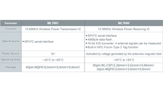 Beide ICs – Sender ML7661 und dem Empfänger ML7660 – enthalten einen Steuerschaltkreis für das Senden und Empfangen, weshalb kein externer Mikrocontroller benötigt wird. Die neuen ICs bezeichnet Lapis als branchenweit kleinste Lösung in der 1-W-Klasse. Beide ICs eignen sich ideal für Wearables mit großer Akkukapazität, die über lange Zeiträume getragen werden sollen. Typische Anwendungen sind Blutdruckmessgeräte, Fitness-Tracker, smarte Brillen und Uhren sowie Hörgeräte. Durch die hohe Frequenz von 13,56 MHz unterstützten die ICs auch die Nahfeldkommunikation (NFC).