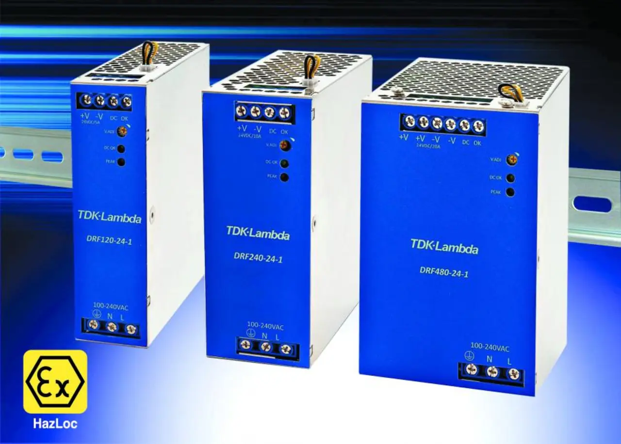 Seit knapp einem Jahr sind inzwischen auch die hocheffizienten DIN-Schienen-Netzteile der DRF-Serie mit Ausgangsleistungen von 120, 240 und 480 W bei TDK-Lambda erhältlich. Sie arbeiten mit Wirkungsgraden von bis zu 94 Prozent und liefern bei Bedarf für 4 Sekunden eine Ausgangsleistung von 150 Prozent. In der Ausführung DRF/HL sind die Geräte nun für den Einsatz in explosionsgefährdeten Bereichen sowie für den Schiffbau- und Marine-Einsatz erhältlich. Dokumentiert wird dies neben den ATEX/IECEx-Approvals IEC/EN 60079-0 & 60079-15 auch mit den Zulassungen nach Del Norske Veritas und dem German Lloyd Marine Approval.