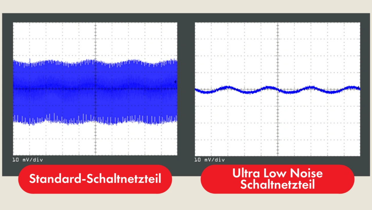 Die Rede ist von störungsarmen Netzteilen. Der Vorteil: Während Standardnetzteile aus Kostengründen meist nur so entstört werden, dass der Störpegel nur geringfügig unterhalb der zulässigen Grenzwerte liegt, und damit weiterhin Störungsgefahr besteht, liegt bei der Entwicklung störungsarmer Netzteile der Fokus auf möglichst geringen Störungen sowohl bei der Netzrückwirkung als auch auf der DC-Ausgangsseite und den abgestrahlten Emissionen. Das Herzstück der Netzteile ist der Übertrager. Ein Beispiel dafür sind die Ultra-Low-Noise-Netzteile des japanischen Herstellers Daitron, die konsequent auf Störarmut hin entwickelt werden.