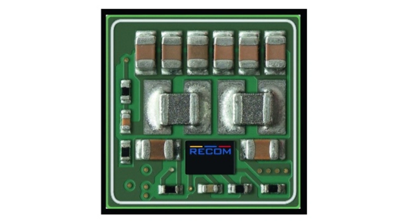 Wer diese Problematik in den Griff bekommen möchte, muss einen wesentlich größeren Aufwand treiben. Bei einem guten Design, wie in der neuen RPM-Serie von Recom Power, ist der Ausgang mit sechs parallel geschalteten Kondensatoren gepuffert (Bild 1) – wesentlich mehr als von den Chipherstellern empfohlen. Zudem hat die Parallelschaltung mehrerer kleiner Keramikkondensatoren eine wesentlich größere Oberfläche als ein einzelner großer, sodass sie mehr Wärme aus dem IC und den Induktivitäten in die Masselage ableiten können. Außerdem haben sie noch einen geringeren ESR (äquivalenter Serienwiderstand).