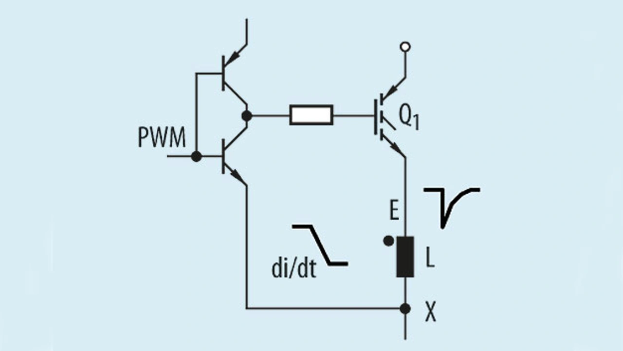 In vielen Fällen verlangt die Brückenschaltung, dass die Ansteuerschaltung eine Isolation nach bestimmten Sicherheitsvorschriften aufweist. Die Isolationsbarriere der Treiber-Schaltung muss deshalb robust sein und darf während der projektierten Nutzungsdauer durch Teilentladungs-Effekte nicht signifikant beeinträchtigt werden. Die Gleichspannungswandler der MGJ-Serie von Murata wurden entwickelt, um optimale Treiberspannungen und Isolationseigenschaften für diese High-Side-Gate-Treiber-Schaltungen zu bieten. Die positive Versorgungsspannung der Gate-Treiber-Schaltung sollte so hoch gewählt werden, dass sie eine vollständige Sättigung/Anreicherung des Leistungsschalters ermöglicht, ohne jedoch die absolute Maximalspannung für dessen Gate zu überschreiten. Um unterschiedlichen Bauelementen gerecht zu werden, gibt es in der MGJ-Serie Optionen für +15 V oder +20 V. Zum Beispiel sind IGBTs und GaN-MOSFETs bereits bei einer Treiber-Spannung von 15 V vollständig eingeschaltet, während typische SiC-MOSFETs eine näher an 20 V liegende Treiber-Spannung benötigen, um den kompletten Anreicherungszustand zu erreichen. Was die negative Versorgungsspannung betrifft, können die im Aus-Zustand am Gate liegenden 0 V für alle Bauelemente als ausreichend angesehen werden. Allerdings bewirkt eine negative Spannung – typisch zwischen –5 und –10 V – ein besonders zügiges Abschalten, gesteuert von einem Gate-Widerstand. Die Einschaltschwelle der Gate-Spannung beträgt bei einem IGBT wenige Volt (typisch 5 V), während sie bei SiC- und GaN-MOSFETs deutlich geringer ist und nur etwas mehr als 1 V betragen kann. Als weiterer Aspekt kommt hinzu, dass jegliche Induktivität L zwischen dem Schalter und der Treiber-Referenz (Bild 1) zum Entstehen einer Gate-Emitter-Spannung mit umgekehrtem Vorzeichen führt, wenn der Schalter sperrt.