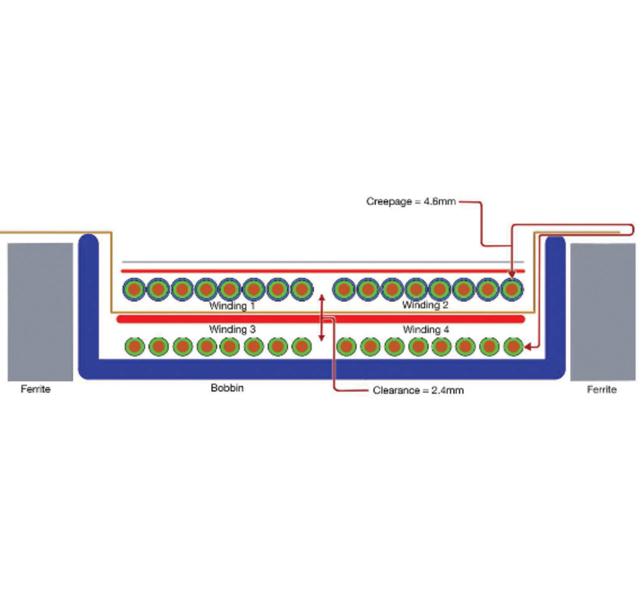 Bisherige Versuche, hoch isolierte DC/DC-Wandler in einem kleinen Gehäuse unterzubringen, scheiterten letztlich an der Transformator-Technik. Wegen der von UL (Underwriters Laboratories) in der jeweiligen Isolationsklasse geforderten Werte für Luft- und Kriechstrecken können Primär- und Sekundärwicklung nicht einfach übereinander gewickelt werden, wie dies für einen »funktional« isolierten Wandler völlig ausreichen. Stattdessen wickelt man getrennt auf entgegengesetzten Hälften des Ferritkerns, der dadurch größer zu dimensionieren ist.