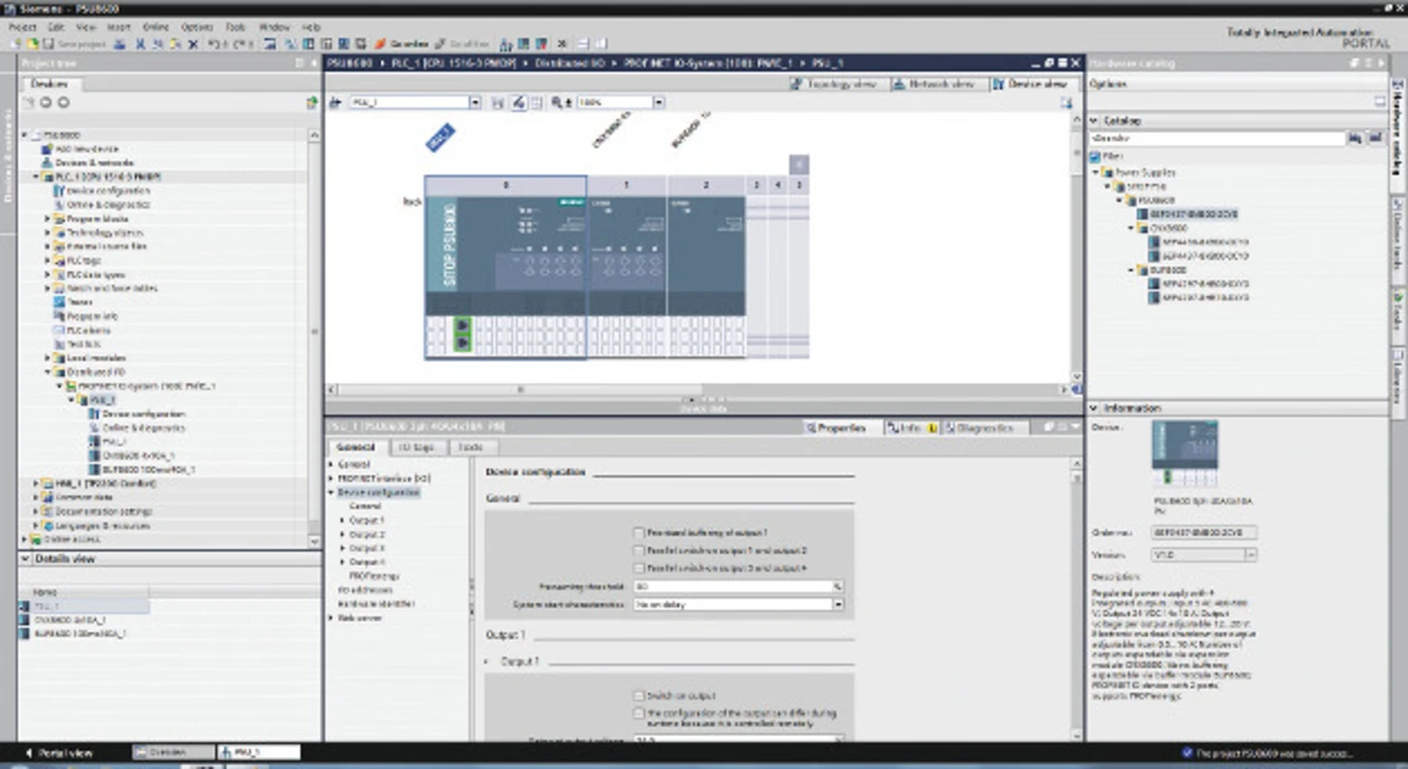 Zur weiteren Steigerung der Betriebssicherheit trägt auch bei, dass sämtliche Betriebs- und Diagnoseinformationen, etwa über Überlastzustände von Ausgängen oder Übertemperatur, automatisch in die Systemdiagnose der S7 übernommen werden. Damit ist die Stromversorgung integraler Teil der Automatisierungslösung. »Mit diesen Eigenschaften eignet sich die Sitop PSU8600 insbesondere für den Einsatz in Branchen mit hohen Anforderungen an Zuverlässigkeit und Integration«, versichert Hager, »dazu zählen beispielsweise die Automobil-, Nahrungsmittel- oder Pharmaindustrie sowie der Anlagen- und Sondermaschinenbau«. Durch die Einbindung in das TIA Portal vereinfachen sich die Projektierung, Konfiguration und der Betrieb der Stromversorgung deutlich. So stehen über die integrierten Profinet-Schnittstellen umfassende Betriebs- und Diagnosefunktionen zur Verfügung, die sich direkt über die Simatic S7 auswerten und in WinCC visualisieren lassen. Für die schnelle Einbindung in Anwenderprogramme stehen standardisierte S7-Funktionsbausteine für Simatic-Steuerung und vorgefertigte WinCC-Faceplates als kostenlose Downloads zur Verfügung. Eingebaute Condition-Monitoring-Funktionen liefern Informationen über den Betriebszustand und warnen den Anwender frühzeitig, etwa bei Überlast von Ausgängen, Übertemperatur, Systemüberlast oder Netzausfall. Anwender können so schnell geeignete Maßnahmen ergreifen, um Störungen zu vermeiden und die Verfügbarkeit zu erhöhen. Mehrere Funktionen unterstützen zudem ein effektives Energiemanagement. Dazu zählen die Erfassung aktueller Verbrauchswerte wie Strom und Spannung je Ausgang und das gezielte Abschalten von Ausgängen in Pausenzeiten, auch über Profienergy-Profile. Das Funktionsspektrum reicht bis zur Einbindung der Stromversorgungslösung in Energiemanagementsysteme.