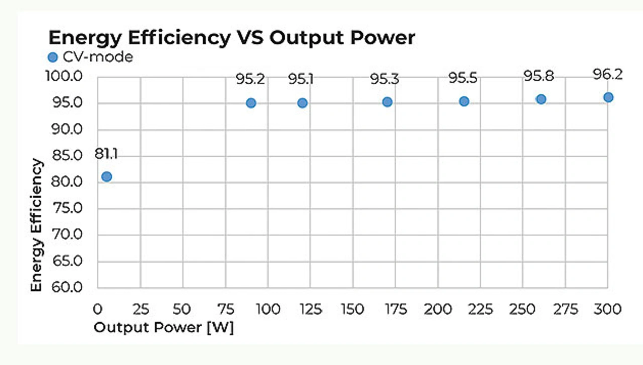 In der Senderstufe sind die Schaltverluste durch eine Kombination aus ZVS- und ZCS-nahen Bedingungen und der Robustheit gegenüber Eingangs- und Lastschwankungen nahezu Null. Weil die Sendestufe bei E2Watt nicht resonant arbeitet, wird der ZVS-Betrieb bei jedem Lastzustand erreicht. Dadurch bleibt der Wirkungsgrad des Senders über einen weiten Ausgangsleistungsbereich hoch (Bild 3).