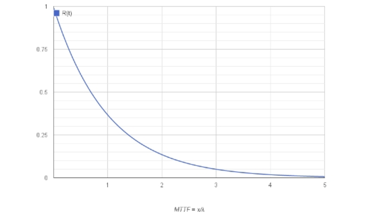Zur Berechnung der Zuverlässigkeit (der Wahrscheinlichkeit, dass ein Bauteil nicht nach einer bestimmten Zeit ausfällt) wird folgende Formel verwendet: