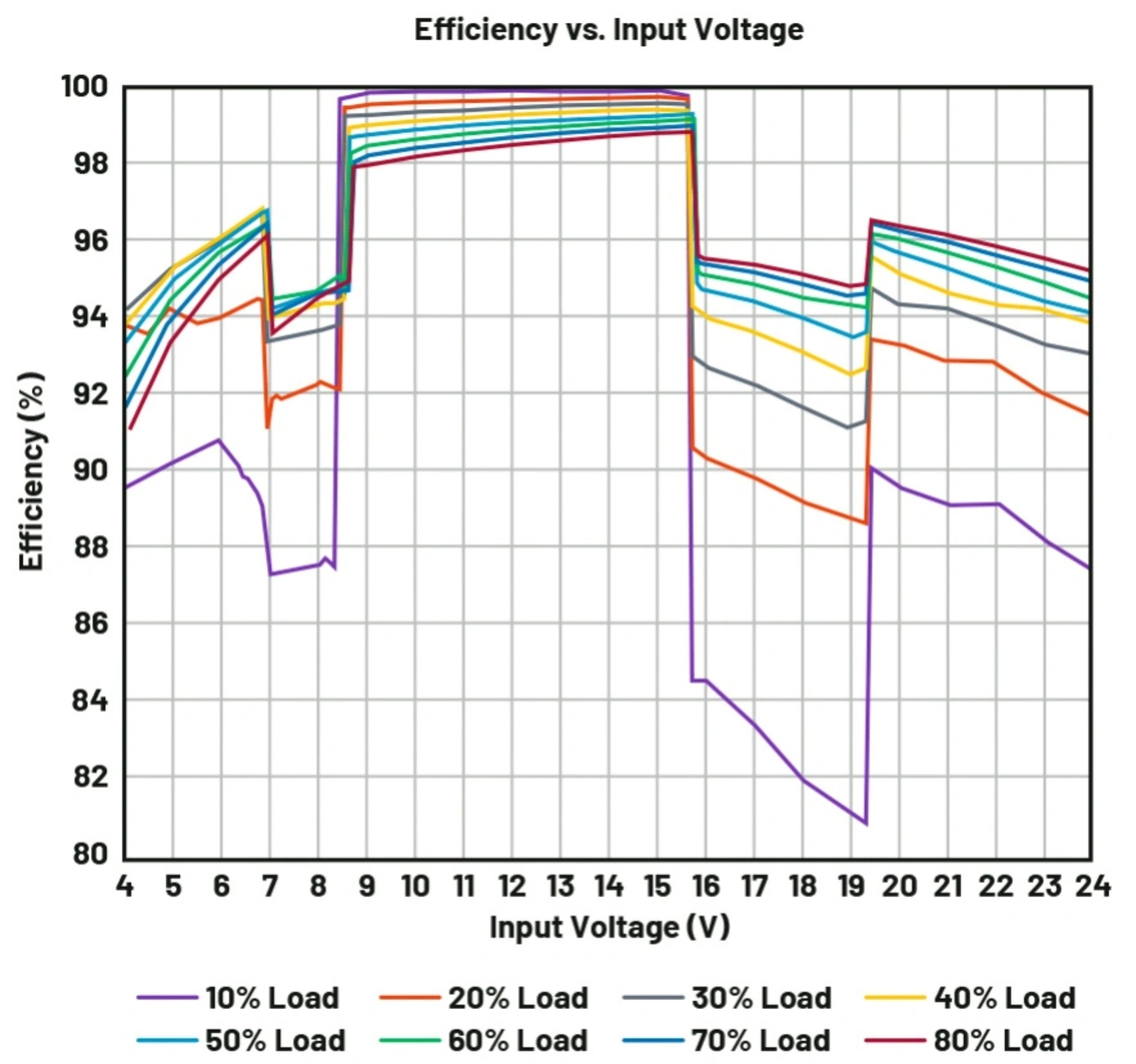 Der PassThru-Modus in einem Abwärts-/Aufwärtswandler erhöht darüber hinaus die Flexibilität, da damit die Möglichkeit besteht, für die Abwärtsausgangsspannung einen anderen Wert als für die Aufwärtsausgangsspannung einzustellen. Im Gegensatz dazu hat ein typischer Abwärts-/Aufwärtswandler nur eine Nennausgangsspannung. Diese Eigenschaft schützt auch die Last, wenn sich die Eingangsspannung »abnormal« verhält. Der LT8210 verfügt über den PassThru-Modus und ist damit der einzige Abwärts-/Aufwärtsregler am Markt mit dieser Fähigkeit.