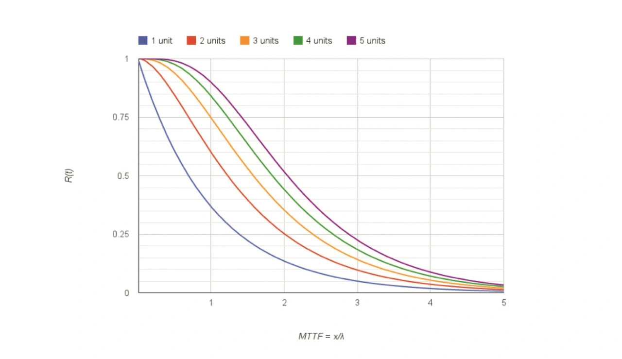 Bei der Basisredundanz werden nur N identische Stromversorgungen für die Last benötigt, aber N+1 werden parallel verwendet, wobei N so niedrig wie eins sein kann, aber meist eine Zahl zwischen zwei und sechs ist. Fällt eine der N Einheiten aus, können die verbleibenden Einheiten den erforderlichen Ausgangsstrom liefern. Dieser Ansatz funktioniert deshalb, weil die Wahrscheinlichkeit, dass mehr als eine Einheit ausfällt, recht gering ist. Beträgt zum Beispiel die Ausfallwahrscheinlichkeit bei einer einzelnen Stromversorgung zum Beispiel 1 %, dann sinkt diese bei zwei parallelgeschalteten Stromversorgung auf 100 ppm (1 % × 1 %; Bild 3). Natürlich bringt die N+1-Redundanz auch höhere Vorlaufkosten und häufig die Notwendigkeit einer Hot-Swap-Fähigkeit mit sich, um die ausgefallene Versorgung zu ersetzen.