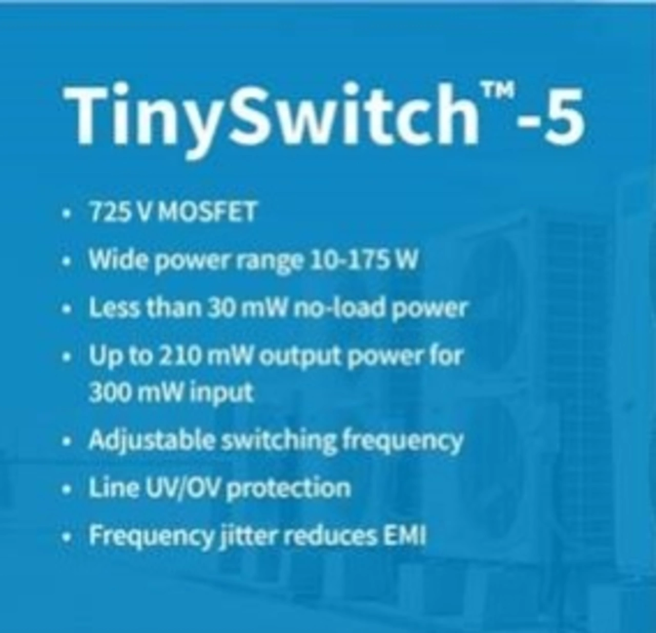 Mit der neuen TNY-5 Familie hat Power Integrations einen neue Schaltregler Familie für Netzteilentwicklungen herausgebracht. Die Familie deckt einen sehr weiten Leistungsbereich von 10W-175W ab, sodass dieser, recht einfach aufgebauter Schaltregler, für viele Anwendungen interessant ist.